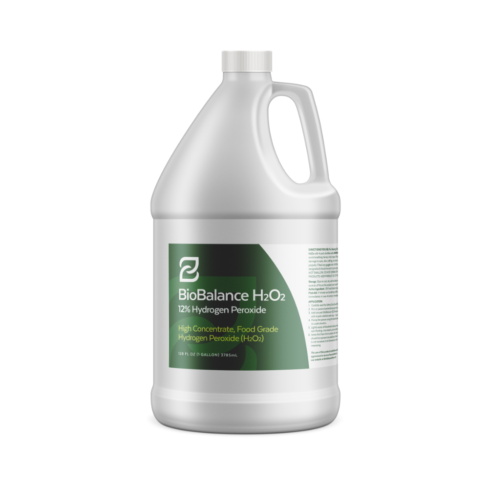 • BioBalance H2O2™ – 1 gallon of 12% hydrogen peroxide solution – treats up to 1,500 sq. ft.