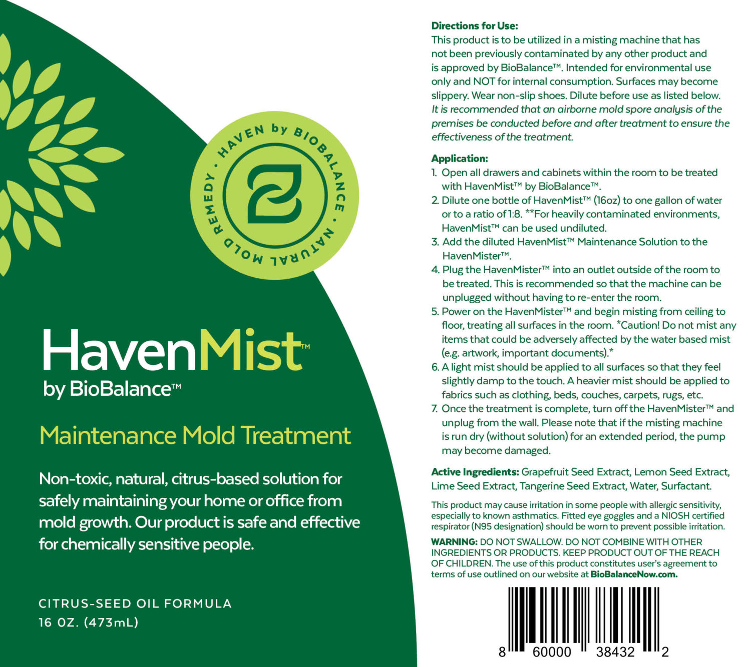 HavenMist is a proprietary, all-natural botanical blend of citrus seed extracts that is diluted with purified water.